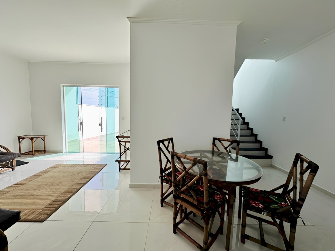 - Sala de estar integrada à sala de jantar, criando um ambiente amplo e aconchegante para convivência;